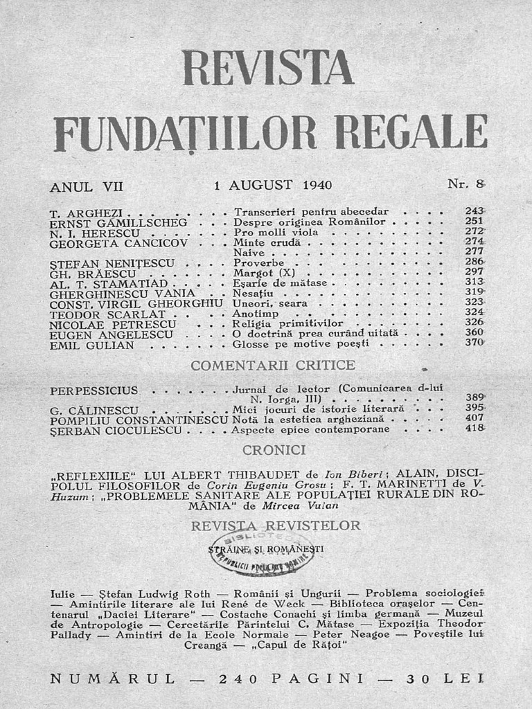 Rev Fundatiilor Regale 1940 08 1 Aug Revista Lunara De Literatura Arta Si Cultura Generala