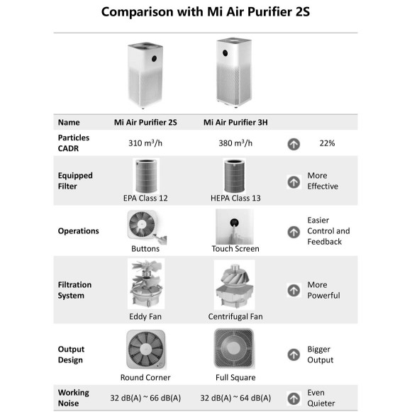 Xiaomi Mi Air Purifier 2s Vs 3h